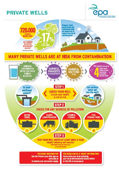 The EPA have a Protect your Well web application that will bring you through a step-by-step process of assessing if your well is properly protected against contamination. The App also shows you some things you can do if your well is not properly protected.